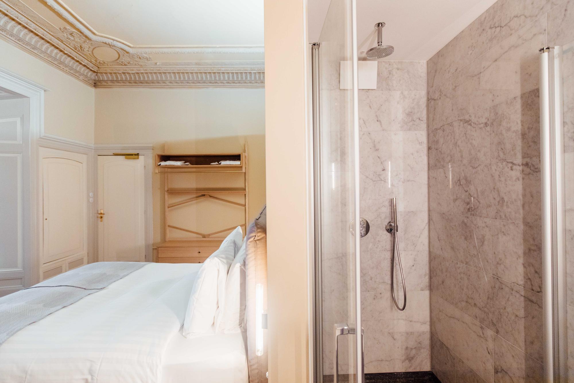 De Superior Suite op de begane grond van Maison Hustinx is een historische ruimte met panoramisch uitzicht op het Vrijthof. Het beschikt over antieke open haarden, hoge plafonds en originele decoratieve elementen die dateren uit de jaren 1920. U kunt genieten van een eigen zithoek, een kingsize Auping-bed en een eigen badkamer met een inloop-regendouche.